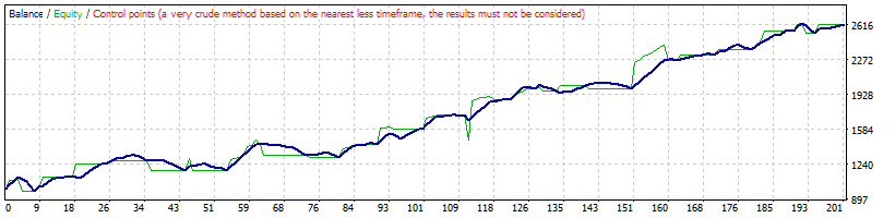 | 100 | H1 | AUDUSD | 3.0 | MT4 MT5 | 6517 | Control & Tick | 1761.50 | 289 | 5.43 | 2.05 | 6.10 | 324.40 | 24.43 | 57.09 | -13.53 | 20.84 |