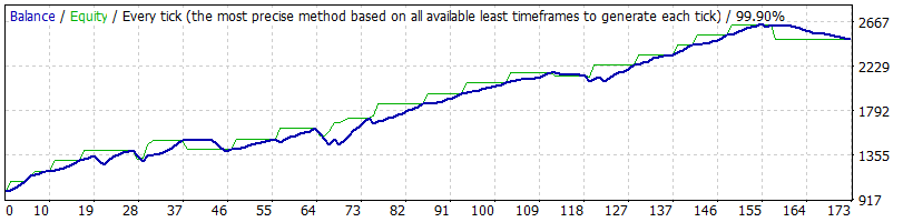 | 100 | H1 | GBPCAD | 5.0 | MT4 MT5 | 7380 | Control & Tick | 2322.88 | 174 | 3.73 | 2.70 | 13.35 | 622.52 | 22.23 | 66.67 | -23.60 | 31.83 |