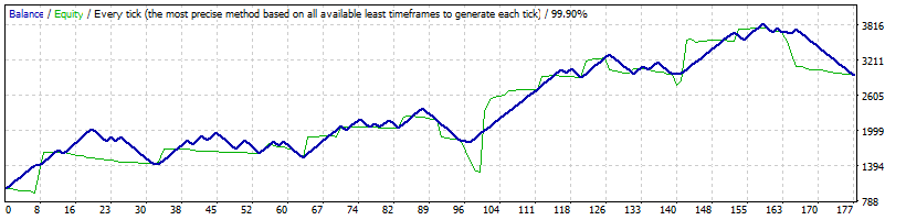 | 100 | H1 | GBPUSD | 3.0 | MT4 MT5 | 4461 | Bar & Tick | 3937.48 | 399 | 1.61 | 1.32 | 9.87 | 2438.24 | 51.42 | 60.40 | -79.05 | 68.17 |