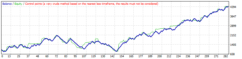 | 100 | H1 | EURAUD | 4.0 | MT4 MT5 | 7136 | Bar & Tick | 4462.33 | 281 | 2.14 | 1.70 | 15.88 | 2081.56 | 37.05 | 70.82 | -78.08 | 54.60 |