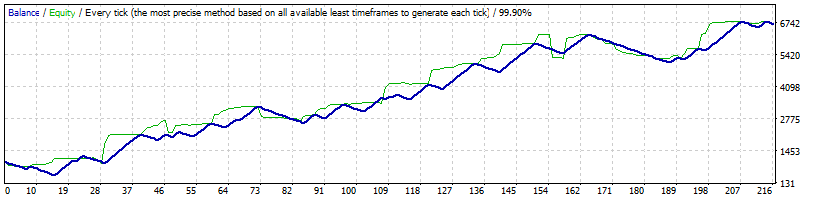 | 100 | H4 | EURUSD | 3.0 | MT4 MT5 | 6567 | Bar & Tick | 5697.36 | 216 | 4.21 | 1.95 | 26.38 | 1353.54 | 20.81 | 45.83 | -51.01 | 117.83 |