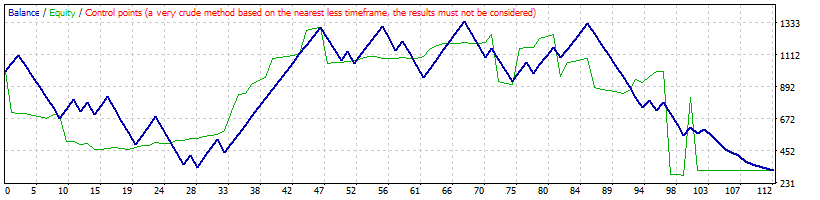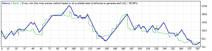 | 100 | H1 | EURAUD | 4.0 | MT4 MT5 | 6260 | Bar & Tick | -566.99 | 287 | -0.34 | 0.92 | -1.98 | 1689.98 | 81.22 | 56.45 | -55.72 | 39.49 |