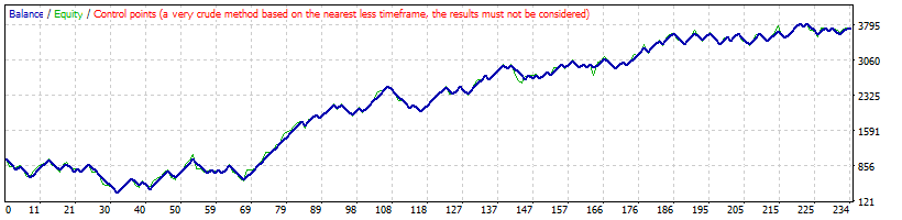 | 100 | H4 | EURUSD | 3.0 | MT4 MT5 | 7086 | Bar & Tick | 2096.86 | 241 | 3.01 | 1.18 | 8.70 | 696.87 | 29.08 | 56.85 | -109.55 | 98.47 |