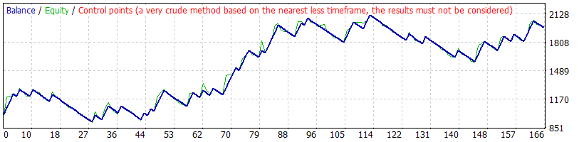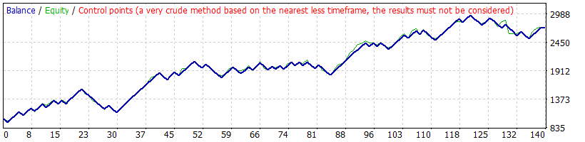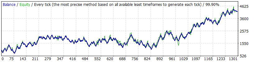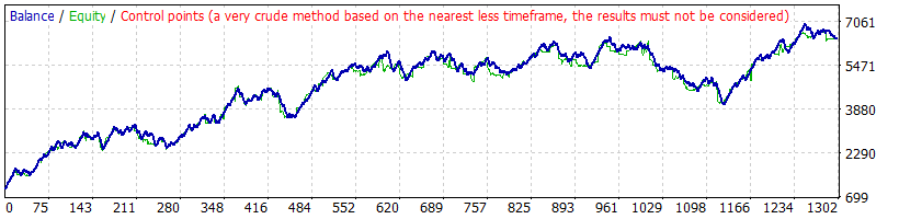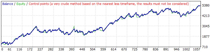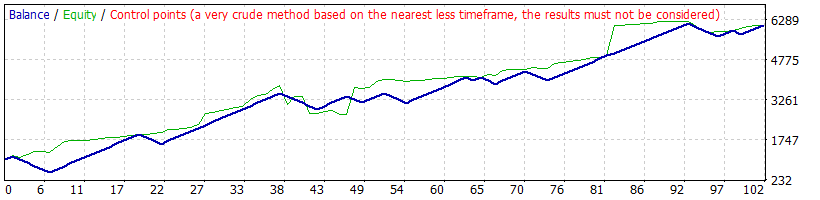 | 100 | H1 | GBPUSD | 3.0 | MT4 MT5 | 6374 | Bar & Tick | 13318.56 | 1053 | 2.28 | 1.30 | 12.65 | 5839.02 | 45.04 | 46.82 | -80.07 | 117.96 |