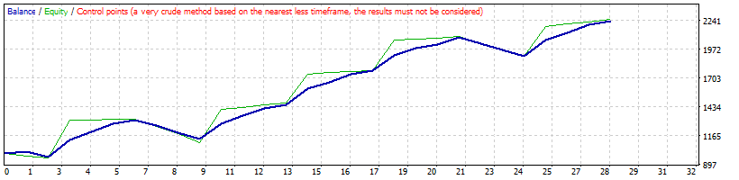 | 100 | H4 | EURAUD | 4.0 | MT4 | 10736 | Control & Tick | 707.03 | 40 | 2.53 | 2.54 | 17.68 | 278.98 | 14.05 | 60.00 | -28.64 | 48.55 |