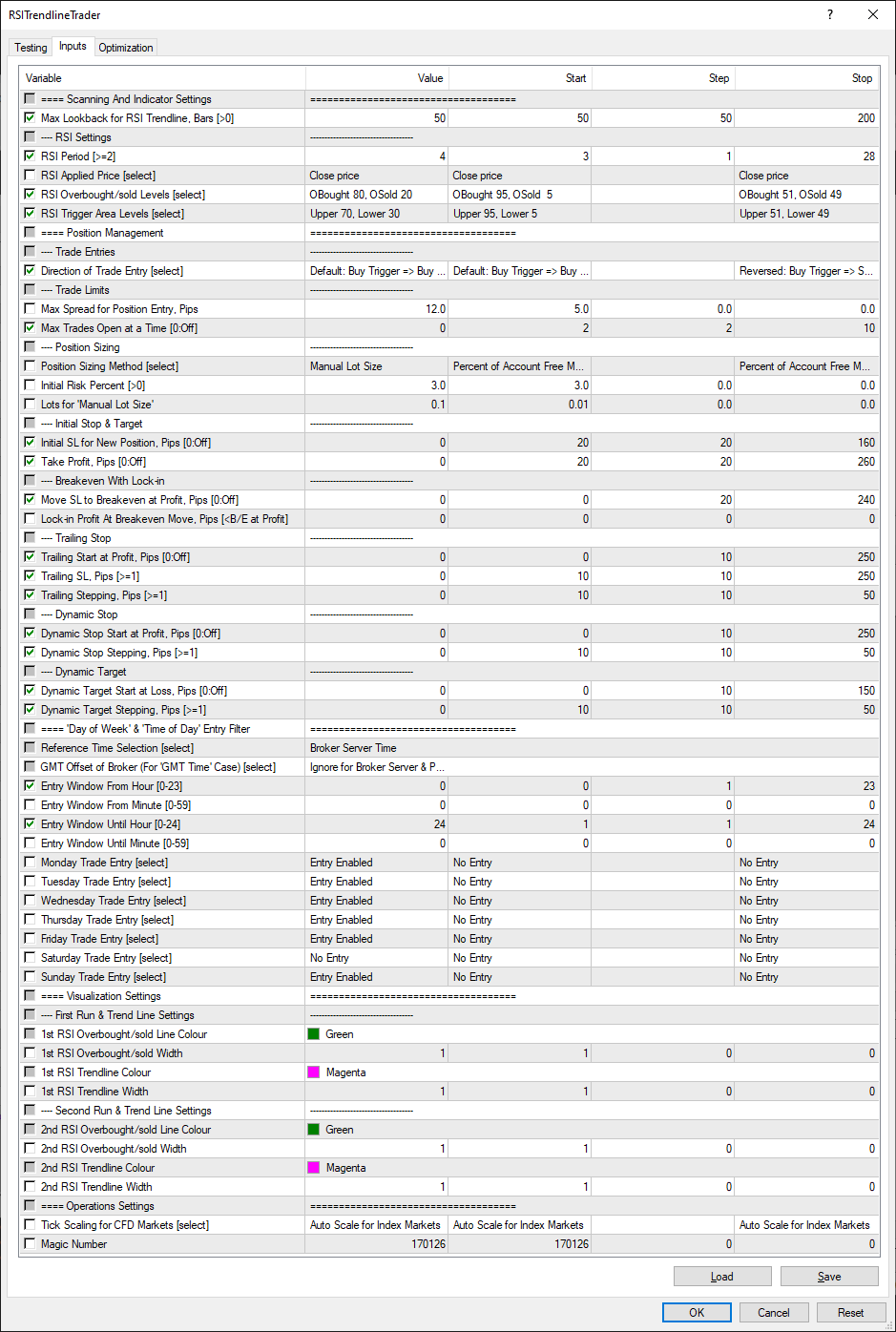 | Leverage | Timeframe | Symbol | Model | Profit | MaxLookbackBars | RSI_Period | RSI_OBSLevels | RSI_TriggerAreaLevels | TradeDirection | MaxTrades | InitialStopLoss | TakeProfit | BreakEvenProfit | TrailingStart | TrailingStop | TrailingStep | DynamicStop_Start | DynamicStop_Step | DynamicTarget_Start | DynamicTarget_Step | EntryWindow_StartHour | EntryWindow_UntilHour | RSI_AppliedPrice | MaxSpread | LotSizingMethod | InitialRiskPercent | ManualLots | BreakEvenLockin | ReferenceTime | BrokerGMTOffset | EntryWindow_StartMin | EntryWindow_UntilMin | DayOfWeek_Monday | DayOfWeek_Tuesday | DayOfWeek_Wednesday | DayOfWeek_Thursday | DayOfWeek_Friday | DayOfWeek_Saturday | DayOfWeek_Sunday | Runline1_Width | Trendline1_Width | Runline2_Width | Trendline2_Width | CFDTickScaling | MagicNumber |