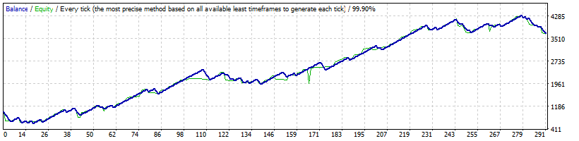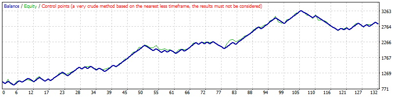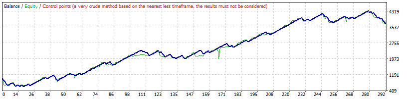 | 100 | H1 | EURJPY | 3.0 | MT4 MT5 | 6534 | Bar & Tick | 9132.84 | 1870 | 2.08 | 1.19 | 4.88 | 4384.76 | 49.59 | 54.71 | -57.77 | 56.76 |