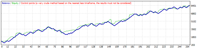 | 100 | H1 | EURUSD | 3.0 | MT4 MT5 | 7942 | Bar & Tick | 8490.98 | 238 | 4.74 | 2.15 | 35.68 | 1790.29 | 22.84 | 59.66 | -76.98 | 111.84 |