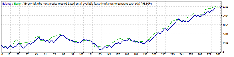 | 100 | H1 | GBPCAD | 5.0 | MT4 MT5 | 10622 | Bar & Tick | 6867.85 | 671 | 4.58 | 1.36 | 10.24 | 1499.05 | 27.02 | 55.59 | -64.89 | 70.25 |