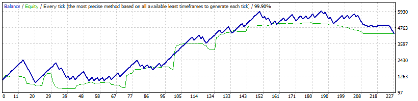 | 100 | H1 | EURJPY | 3.0 | MT4 MT5 | 5552 | Bar & Tick | 2196.25 | 553 | 1.31 | 1.19 | 3.97 | 1677.79 | 38.45 | 16.64 | -25.56 | 151.93 |