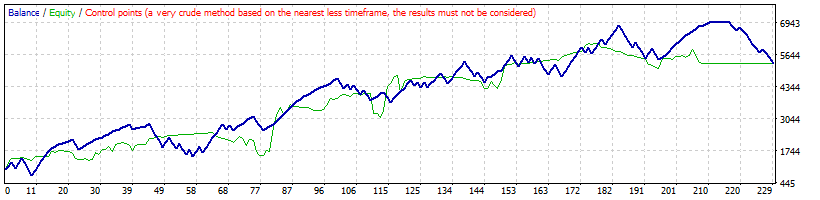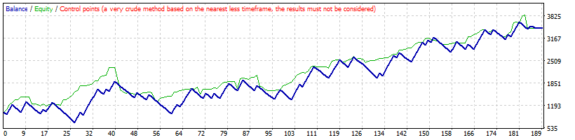 | 100 | H1 | EURUSD | 3.0 | MT4 MT5 | 2229 | Bar & Tick | 3401.07 | 574 | 1.15 | 1.21 | 5.93 | 2952.73 | 71.73 | 87.28 | -221.87 | 39.12 |