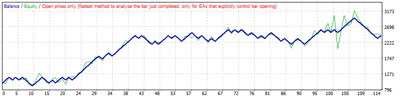 | 100 | M15 | DJ30 | 2.4 | MT4 MT5 | 4337 | Bar & Tick | 1920.00 | 39 | 5.84 | 3.18 | 49.23 | 328.62 | 26.07 | 71.79 | -80.00 | 100.00 |