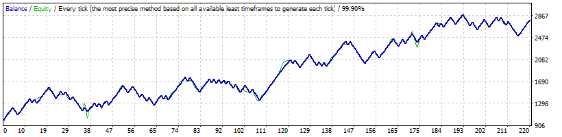 | 100 | H1 | NAS100 | 1.5 | MT4 MT5 | 2807 | Bar & Tick | 2372.67 | 224 | 3.48 | 1.41 | 10.59 | 680.92 | 24.85 | 36.16 | -40.00 | 99.91 |