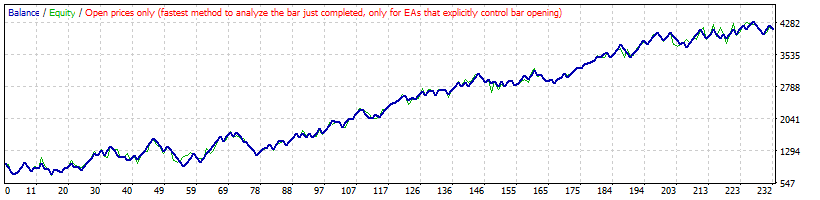 | 100 | H1 | NAS100 | 1.5 | MT4 MT5 | 4351 | Bar & Tick | 3419.62 | 233 | 4.41 | 1.41 | 14.68 | 776.02 | 41.87 | 57.51 | -83.57 | 87.26 |