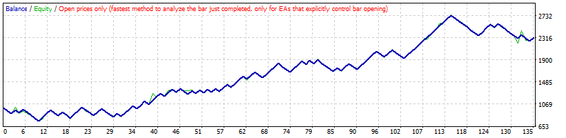 | 100 | H1 | EURUSD | 3.0 | MT4 MT5 | 4404 | Bar & Tick | 2550.06 | 237 | 2.84 | 1.27 | 10.76 | 896.88 | 42.54 | 56.54 | -90.87 | 88.88 |