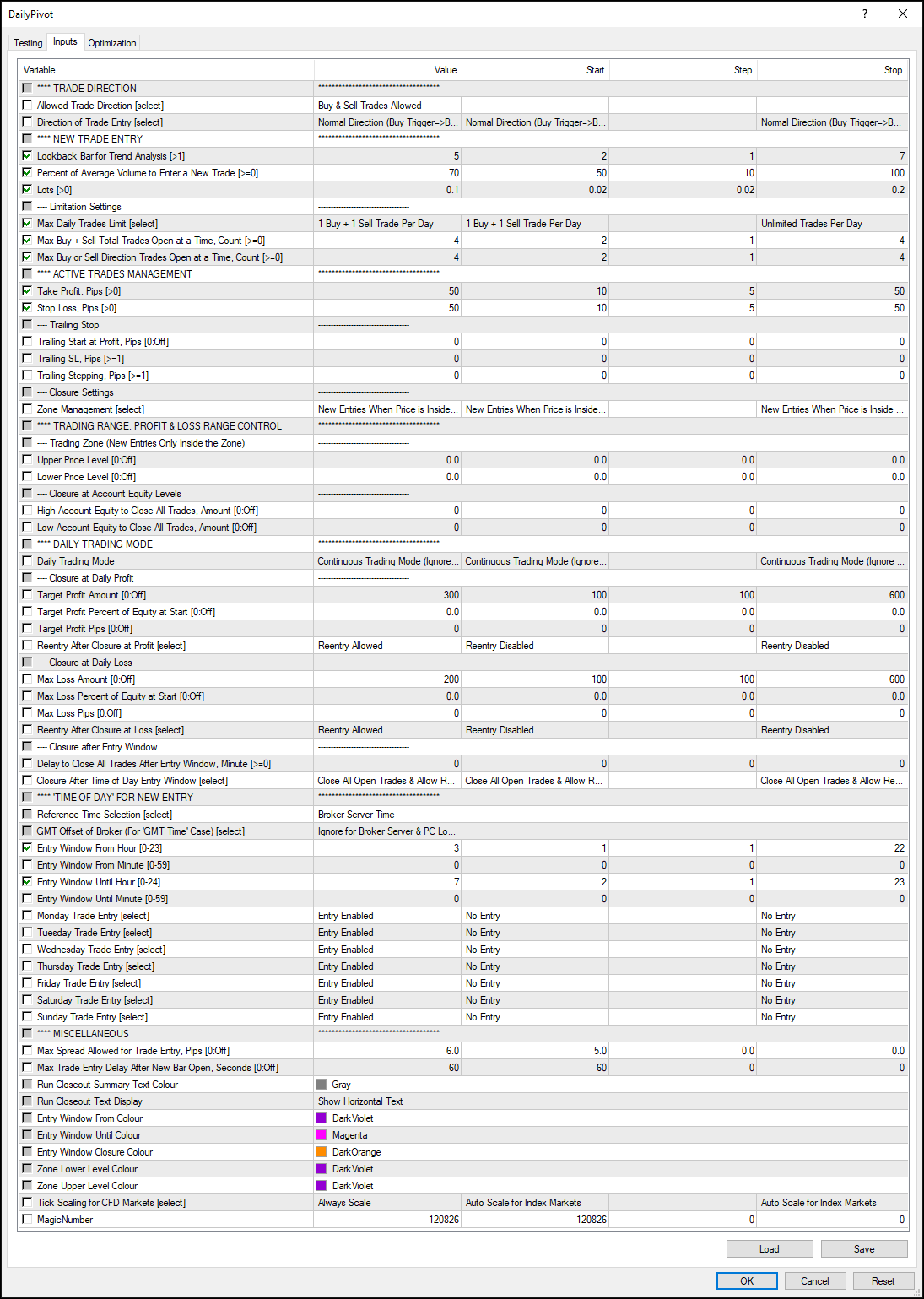 Historic Best Settings Analysis for DailyPivot