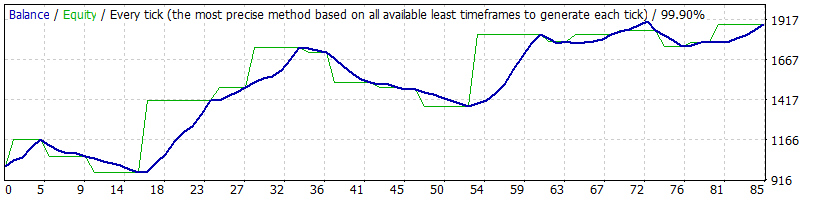 | 100 | H1 | GBPUSD | 3.0 | MT4 MT5 | 7339 | Control & Tick | 889.10 | 85 | 1.74 | 2.11 | 10.46 | 509.70 | 28.31 | 57.65 | -22.33 | 34.55 |