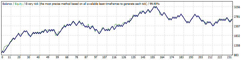 | 100 | H1 | EURJPY | 3.0 | MT4 MT5 | 7617 | Bar & Tick | 2242.10 | 206 | 2.10 | 1.32 | 10.88 | 1066.71 | 29.52 | 55.34 | -76.13 | 81.11 |