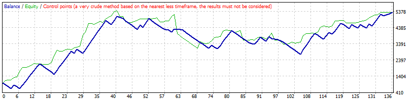 | 100 | H1 | EURUSD | 3.0 | MT4 MT5 | 10048 | Bar & Tick | 4396.96 | 136 | 1.72 | 1.51 | 32.33 | 2555.90 | 46.30 | 41.91 | -108.83 | 227.97 |