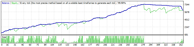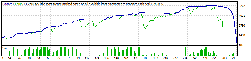 | 100 | M1 | AUDUSD | 3.0 | MT4 MT5 | 788 | Tick & Tick | 5009.59 | 352 | 2.11 | 2.04 | 14.23 | 2373.44 | 32.06 | 61.93 | -36.06 | 45.14 |
