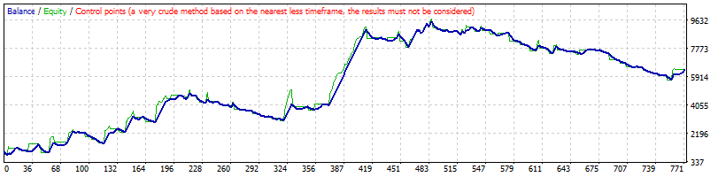 | 100 | H1 | EURUSD | 3.0 | MT4 MT5 | 4155 | Bar & Tick | 20033.07 | 653 | 2.33 | 1.56 | 30.68 | 8598.72 | 75.93 | 74.89 | -218.97 | 114.41 |