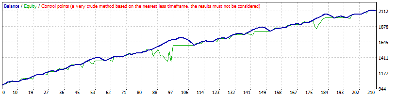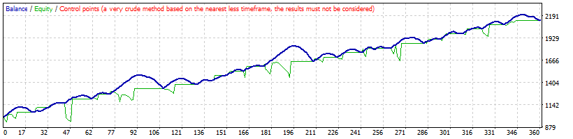 | 100 | M5 | EURAUD | 4.0 | MT4 MT5 | 6850 | Control & Tick | 1071.78 | 350 | 3.68 | 2.17 | 3.06 | 290.86 | 22.52 | 62.57 | -6.98 | 9.07 |